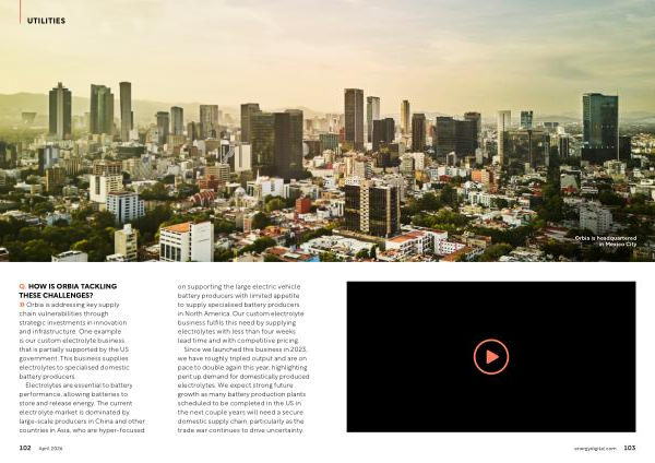 ยป Orbia is addressing key supply chain vulnerabilities through strategic investments in innovation and infrastructure. One example is our custom electrolyte business that is partially supported by the US government. This business supplies electrolytes to specialised domestic battery producers.