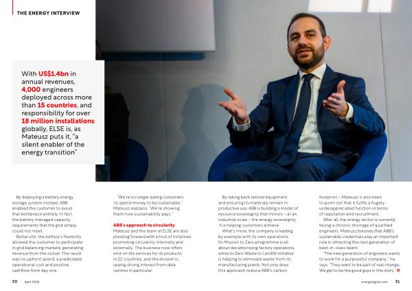 ABB’ s approach to circularity Mateusz and the team at ELSE are also pressing forward with a host of initiatives promoting circularity internally and externally. The business now offers end-of-life services for its products in 22 countries, and the division is seeing strong interest from data centres in particular.