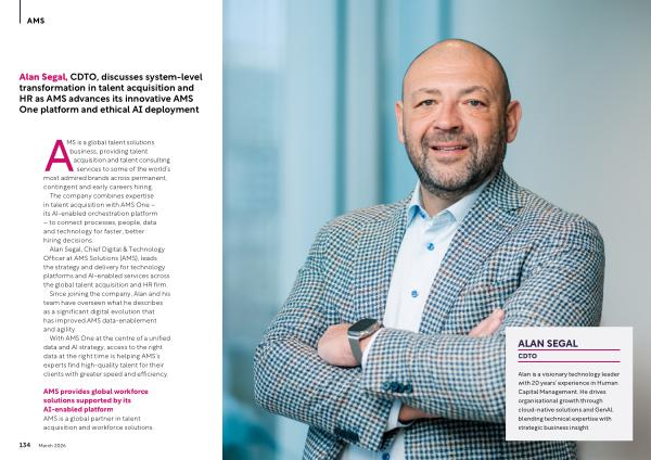 Alan Segal, Chief Digital & Technology Officer at AMS Solutions( AMS), leads the strategy and delivery for technology platforms and AI-enabled services across the global talent acquisition and HR firm.