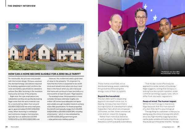 Beyond the household The Zero Bills tariff is expanding beyond individual homes too. In Epping, Octopus has launched a microgrid pilot at a development called Carpenters Yard, which encompasses 113 homes, six flats, three commercial units and on-street EV charging.