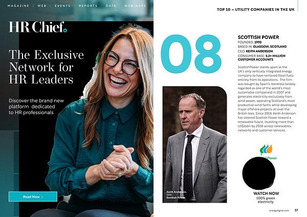 ScottishPower stands apart as the UK’ s only vertically integrated energy company to have removed fossil fuels entirely from its operations. The firm was bought by Spain’ s Iberdrola( widely regarded as one of the world’ s most sustainable companies) in 2007 and generates electricity exclusively from wind power, operating Scotland’ s most productive wind farms while developing major offshore projects all over the British Isles. Since 2018, Keith Anderson has steered Scottish Power toward a renewable future, investing more than US $ 16bn by 2028 across renewables, networks and customer services. Keith Anderson, CEO, Scottish Power