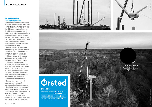 Decommissioning and recycling efforts Between 3 March and 3 September 2017, the Vindeby facility underwent complete dismantling after more than 25 years of operation, with all cables, infrastructure and 33 blades returned to land according to decommissioning documentation. The Technical University of Denmark( DTU) accepted 21 blades as donations, using them to study how wind turbine blades endure decades of operational stress.