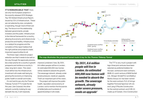 IT ’ S REMARKABLE THAT there are only two European projects in the recently released 2015 Strategic Top 100 Global Infrastructure Report , issued by CG-LA Infrastructure . These are not selected by size , complexity or spending , though most of them are big . The focus is on the relationship between governments , private investors and the public . Infrastructure is the internal framework for a country , allowing its economy and citizens to be productive and healthy . Infrastructure is a catalyst for progress and the compilers of this report believe that the right policies and projects create important opportunities for all .