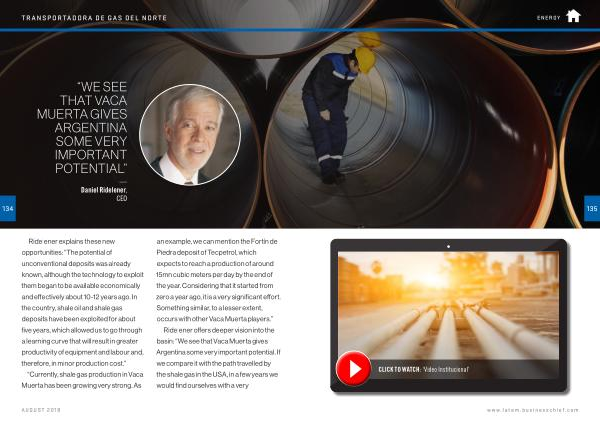 Ridelener offers deeper vision into the basin : “ We see that Vaca Muerta gives Argentina some very important potential . If we compare it with the path travelled by the shale gas in the USA , in a few years we would find ourselves with a very