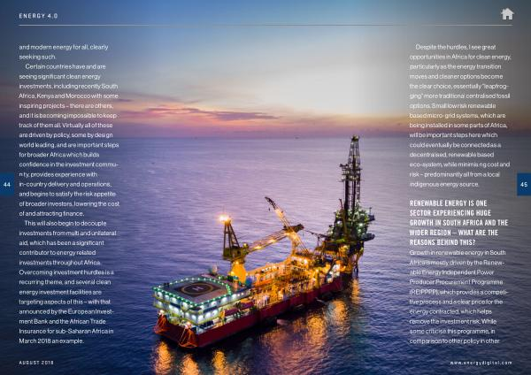 Despite the hurdles , I see great opportunities in Africa for clean energy , particularly as the energy transition moves and cleaner options become the clear choice , essentially “ leapfrogging ” more traditional centralised fossil options . Small low risk renewable based micro-grid systems , which are being installed in some parts of Africa , will be important steps here which could eventually be connected as a decentralised , renewable based eco-system , while minimising cost and risk – predominantly all from a local indigenous energy source .