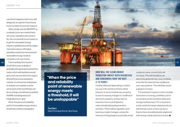 The most likely first mover in South Africa sans subsidy is probably self-generation behind the meter , which with batteries would give a very secure electricity supply . WorleyParsons has assisted a number of commercial enterprises to analyse such systems , and in some parts of the world these can be very large , sometimes exceeding 100MW and designed as an integrated micro-grid .