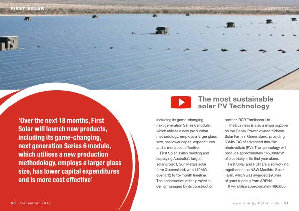 First Solar is also building and supplying Australia ’ s largest solar project , Sun Metals solar farm Queensland , with 140MW over a 12 to 15-month timeline . The construction of the project is being managed by its construction partner , RCR Tomlinson Ltd .