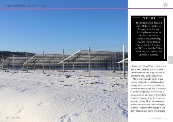 Along with plans to install a gas peaker station to provide baseload energy when necessary , Solis RE is also examining the viability of biomass . “ There ’ s a huge issue with municipal councils being able to environmentally dispose of waste – they don ’ t want to send it all to landfill , so we ’ re looking at how we can convert it into energy instead .” The innovative design of the park does not end there , with plans to