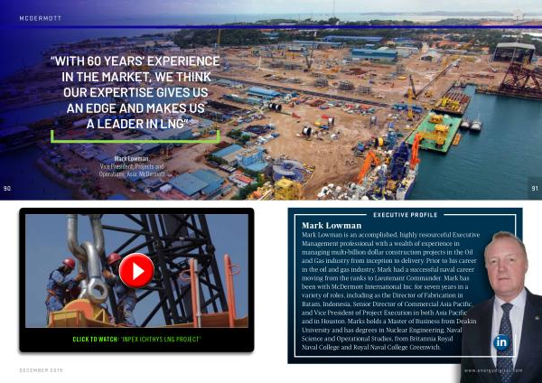 Mark Lowman is an accomplished , highly resourceful Executive Management professional with a wealth of experience in managing multi-billion dollar construction projects in the Oil and Gas industry from inception to delivery . Prior to his career in the oil and gas industry , Mark had a successful naval career moving from the ranks to Lieutenant Commander . Mark has been with McDermott International Inc . for seven years in a variety of roles , including as the Director of Fabrication in Batam , Indonesia , Senior Director of Commercial Asia Pacific , and Vice President of Project Execution in both Asia Pacific and in Houston . Marks holds a Master of Business from Deakin University and has degrees in Nuclear Engineering , Naval Science and Operational Studies , from Britannia Royal Naval College and Royal Naval College Greenwich .