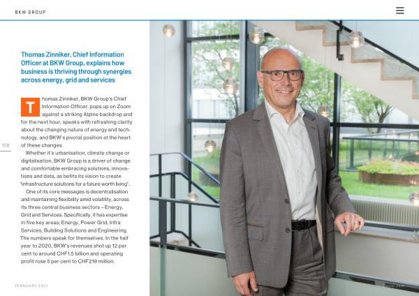 Thomas Zinniker , Chief Information Officer at BKW Group , explains how business is thriving through synergies across energy , grid and services