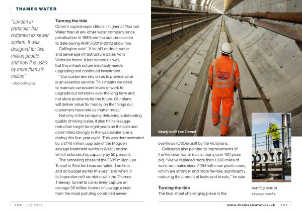 Turning the tide Current capital expenditure is higher at Thames Water than at any other water company since privatisation in 1989 and the outcomes seen to date during AMP5 ( 2010-2015 ) show this .