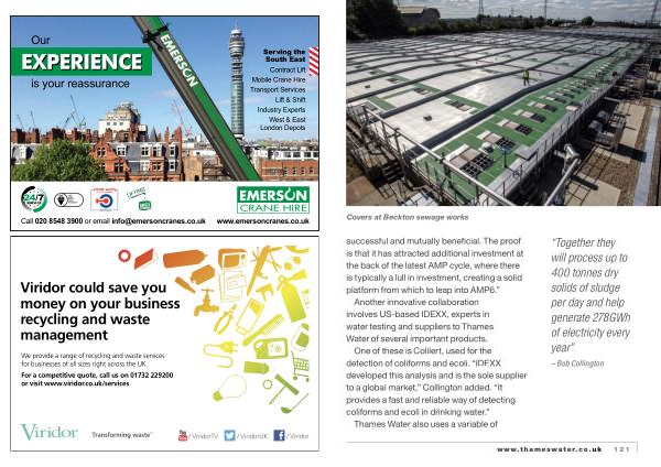 Another innovative collaboration involves US-based IDExx , experts in water testing and suppliers to Thames Water of several important products .