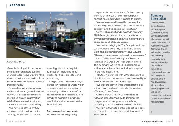 A large portion of the company ’ s technology focuses on waste water processing and more effective oil processing methods . Aaron Oil is concentrating on becoming as ecofriendly as possible , providing a wealth of sustainable solutions for the oil industry .