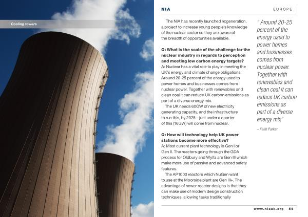 Q : What is the scale of the challenge for the nuclear industry in regards to perception and meeting low carbon energy targets ? A : Nuclear has a vital role to play in meeting the UK ’ s energy and climate change obligations . Around 20-25 percent of the energy used to power homes and businesses comes from nuclear power . Together with renewables and clean coal it can reduce UK carbon emissions as part of a diverse energy mix .