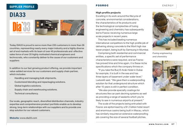 High profile projects Excelling in its work around the lifecycle of concrete , environmental considerations , the characteristics of its products and the technological complexities of fusing engineering and chemistry has subsequently led to Fosroc receiving numerous large scale projects in recent years .