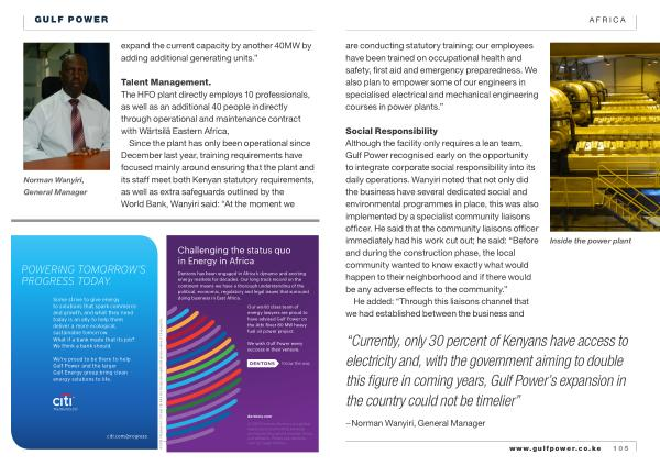 Since the plant has only been operational since December last year , training requirements have focused mainly around ensuring that the plant and its staff meet both Kenyan statutory requirements , as well as extra safeguards outlined by the World Bank , Wanyiri said : “ At the moment we