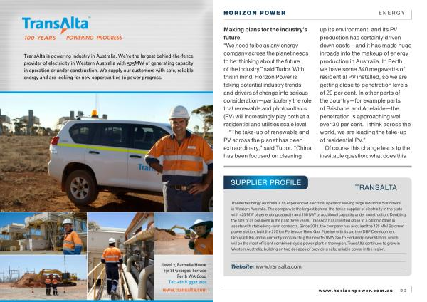 Making plans for the industry ’ s future “ We need to be as any energy company across the planet needs to be : thinking about the future of the industry ,” said Tudor . With this in mind , Horizon Power is taking potential industry trends and drivers of change into serious consideration — particularly the role that renewable and photovoltaics ( PV ) will increasingly play both at a residential and utilities scale level .