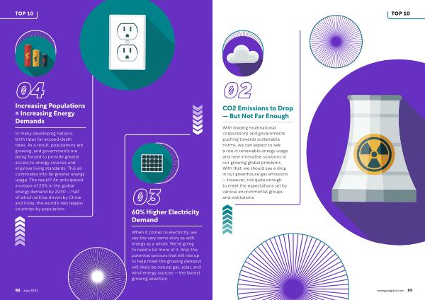 With leading multinational corporations and governments pushing towards sustainable norms , we can expect to see a rise in renewable energy usage and new innovative solutions to our growing global problems . With that , we should see a drop in our greenhouse gas emissions — however , not quite enough to meet the expectations set by various environmental groups and institutions . energydigital . com 89