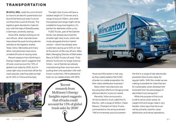 ‘ Recent research from McKinsey ’ s Energy Insights report suggests that eTrucks could account for 15 % of global truck sales by 2030 ’
