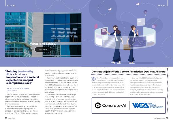 Dow won the 2022 Artificial Intelligence Excellence Awards for its Predictive Intelligence capability , Dow Polyurethanes ’ flagship digitalisation initiative . Predictive Intelligence significantly accelerates the company ’ s ability to meet customer needs by combining Dow ’ s material science expertise with AI and ML capabilities . energydigital . com 75