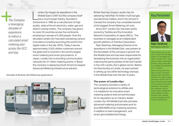 The power of Landis + Gyr : The company provides a variety of technological solutions to utilities and it is notable for its innovative smart metering systems that formed the basis for its reputation as an industry leader . Landis + Gyr AG Middle East also provides advanced metering and pioneers end-toend ( AMI / AMR ) smart metering solutions , in addition to load management , and smart grid enabled technology .