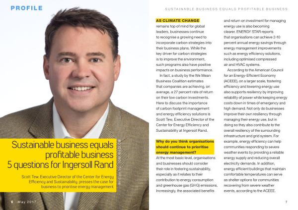 Why do you think organisations should continue to prioritise energy management ? At the most basic level , organisations and businesses should consider their role in fostering sustainability , especially as it relates to their contribution to energy consumption and greenhouse gas ( GHG ) emissions . Increasingly , the associated benefits and return on investment for managing energy use is also becoming clearer . ENERGY STAR reports that organisations can achieve 2-10 percent annual energy savings through energy management improvements such as energy efficiency solutions , including optimised compressed air and HVAC systems .