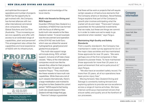 Multi-role Vessels for Diving and ROV Support Guardian Offshore New Zealand is a subsidiary of NZDS that was formed with the focus of offering new build multi-role vessels to the New Zealand market . “ A recent example was the securement and operation of the 2014 NZ new build Guru which was we utilized for several hydrographical , geophysical and geotechnical projects ”.