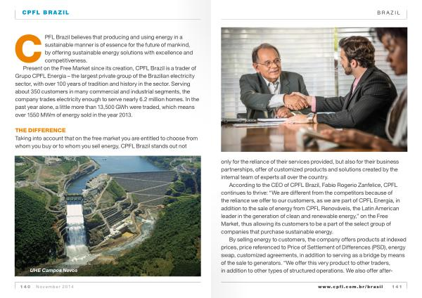 According to the ceO of CPFL Brazil , Fabio Rogerio Zanfelice , CPFL continues to thrive : “ We are different from the competitors because of the reliance we offer to our customers , as we are part of CPFL Energia , in addition to the sale of energy from CPFL Renováveis , the Latin American leader in the generation of clean and renewable energy ,” on the Free Market , thus allowing its customers to be a part of the select group of companies that purchase sustainable energy .