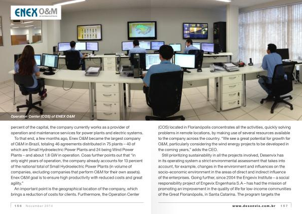 ( COS ) located in Florianópolis concentrates all the activities , quickly solving problems in remote locations , by making use of several resources available to the company across the country . “ We see a great potential for growth for O & M , particularly considering the wind energy projects to be developed in the coming years ,” adds the ceO .