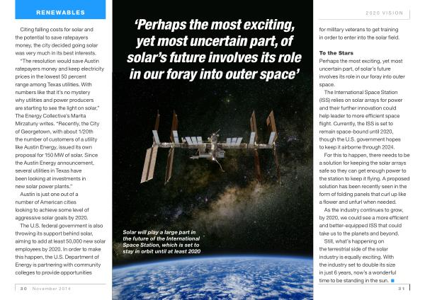 Solar will play a large part in the future of the International Space Station , which is set to stay in orbit until at least 2020