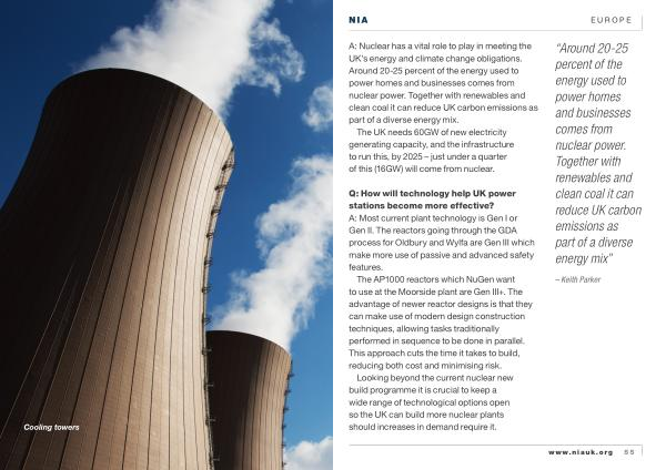 A : Nuclear has a vital role to play in meeting the UK ’ s energy and climate change obligations . Around 20-25 percent of the energy used to power homes and businesses comes from nuclear power . Together with renewables and clean coal it can reduce UK carbon emissions as part of a diverse energy mix .