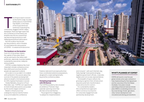The lowdown on the location From 10-21 November, Belém, the capital of Pará state, Brazil, will be rammed to the rafters with politicians, diplomats, business leaders, sustainability executives, lobbyists and journalists.