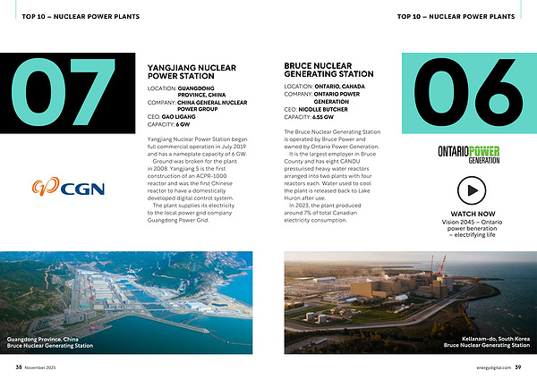 The Bruce Nuclear Generating Station is operated by Bruce Power and owned by Ontario Power Generation.