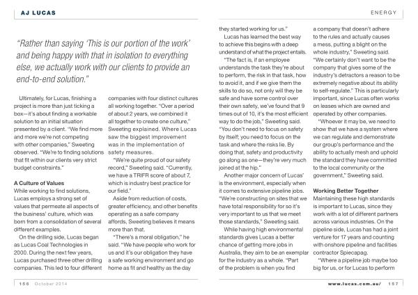 Another major concern of Lucas ’ is the environment , especially when it comes to extensive pipeline jobs . “ We ’ re constructing on sites that we have total responsibility for so it ’ s very important to us that we meet those standards ,” Sweeting said .