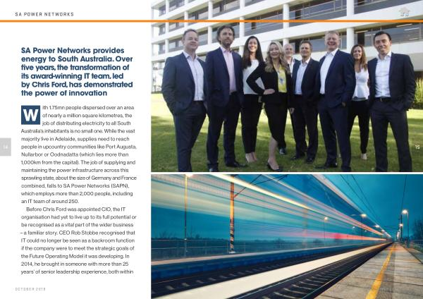 SA Power Networks provides energy to South Australia . Over five years , the transformation of its award-winning IT team , led by Chris Ford , has demonstrated the power of innovation