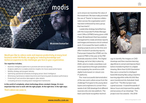 Leadership strategy benefited too , with the Corporate Portfolio Management Office ( CPMO ) being given a MS Power BI dashboard that has enabled management to create and share reports and images and insource a lot of contract work . It increased the team ’ s ability to develop projects and cut the time and effort involved in producing reports . That project helped the CPMO win the award of PMO of the year at the PMI Australia awards in 2018 . The Digital Strategy , set to be fully in place by 2025 , aims to create a seamless customer experience through automation and equipping the workforce with digital tools based on robust core IT platforms .