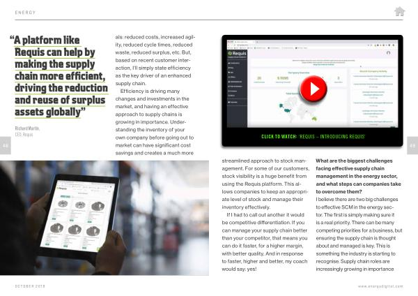 CLICK TO WATCH : ‘ REQUIS – INTRODUCING REQUIS ’ 49 streamlined approach to stock management . For some of our customers , stock visibility is a huge benefit from using the Requis platform . This allows companies to keep an appropriate level of stock and manage their inventory effectively .