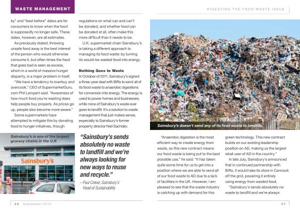 Nothing Goes to Waste In October of 2011 , Sainsbury ’ s signed a three-year deal with Biffa to send all of its food waste to anaerobic digestions for conversion into energy . The energy is used to power homes and businesses , while none of Sainsbury ’ s waste ever goes to landfill . It ’ s a solution to waste management that just makes sense , especially to Sainsbury ’ s former property director Neil Sachdev .