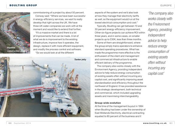 Group-wide evolution At the time of the management buyout in 1994 when Boulting had been under the ownership of East Midlands Electricity , electrical contracting equated to 80 percent of the business and it www . boulting . co . uk 61