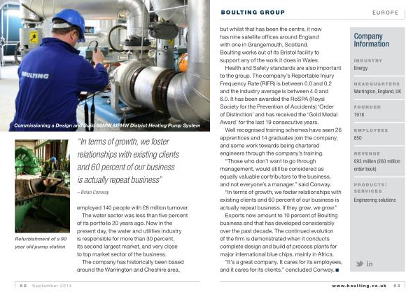 Engineering solutions but whilst that has been the centre , it now has nine satellite offices around England with one in Grangemouth , Scotland . Boulting works out of its Bristol facility to support any of the work it does in Wales .