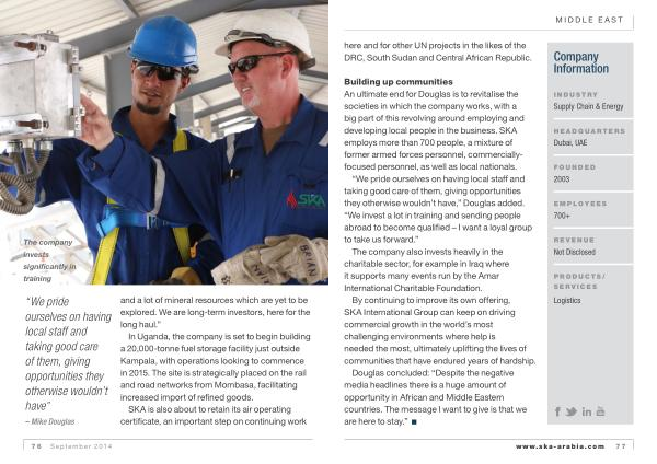 Building up communities An ultimate end for Douglas is to revitalise the societies in which the company works , with a big part of this revolving around employing and developing local people in the business . SKA employs more than 700 people , a mixture of former armed forces personnel , commerciallyfocused personnel , as well as local nationals .