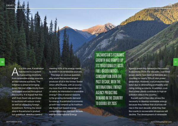 As of this year , Kazakhstan has moved to a system of procuring electricity from renewable energy sources at international auctions . The initiative is aimed at bringing down the cost of electricity from renewable sources throughout the country . It is hoped that this shift from fixed rate purchase to auctions will reduce costs as well as attracting foreign investment , forming the latest step in Kazakhstan ’ s gradual , but ambitious , direction toward meeting 50 % of its energy needs by 2050 from renewable sources .