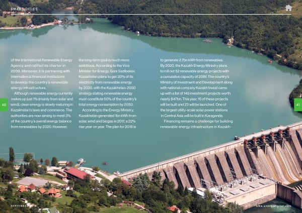 to generate 2.7bn kWh from renewables . By 2020 , the Kazakh Energy Ministry plans to roll out 52 renewable energy projects with a cumulative capacity of 2GW . The country ’ s Ministry of Investment and Development along with national company Kazakh Invest came up with a list of 145 investment projects worth nearly $ 47bn . This year , 15 of these projects will be built and 23 will be launched . One of the largest utility-scale solar power stations in Central Asia will be built in Karaganda .