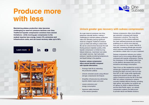 Maintaining plateau production rates becomes challenging as reservoir pressure declines over time. Traditional topside compression solutions have several limitations— while moving gas compression to the seabed requires less energy, lowers CO ² emissions and infrastructure costs, and can boost recovery rates up to 90 %.