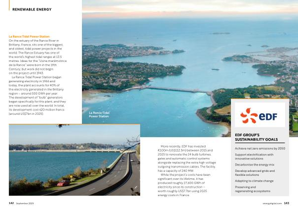 La Rance Tidal Power Station began generating electricity in 1966 and today, the plant accounts for 40 % of the electricity generated in the Brittany region – around 500 GWh per year. The development of“ bulb” generators began specifically for this plant, and they are now used all over the world. In total, its development cost 620 million francs( around US $ 7bn in 2025). La Rance Tidal