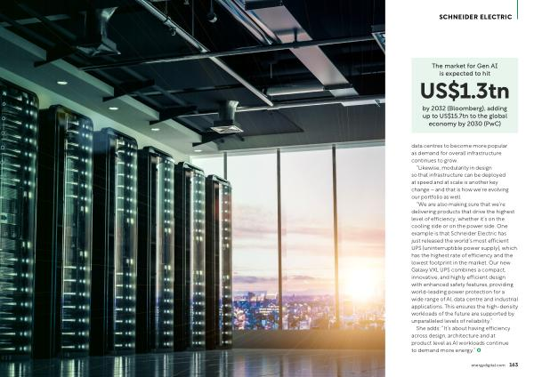 “ We are also making sure that we’ re delivering products that drive the highest level of efficiency, whether it’ s on the cooling side or on the power side. One example is that Schneider Electric has just released the world’ s most efficient UPS( uninterruptible power supply), which has the highest rate of efficiency and the lowest footprint in the market. Our new Galaxy VXL UPS combines a compact, innovative, and highly efficient design with enhanced safety features, providing world-leading power protection for a wide range of AI, data centre and industrial applications. This ensures the high-density workloads of the future are supported by unparalleled levels of reliability.”
