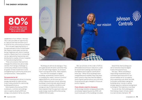 She says:“ When a building is responding instantaneously to command and instruction it can ensure healthy air for occupants, drive operating costs down and talk to the grid, potentially making the building owner money in selling energy capacity or physical energy back to that grid. The trajectory is exciting.”