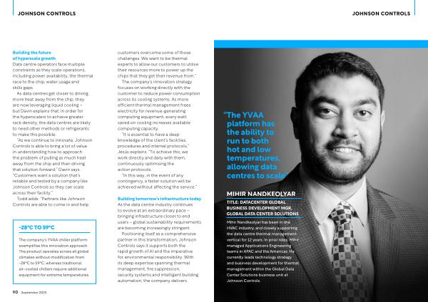 The company’ s YVAA chiller platform exemplifies this innovation approach. The product operates across all global climates without modification from-28 ° C to 59 ° C, whereas traditional air-cooled chillers require additional equipment for extreme temperatures. customers overcome some of those challenges. We want to be thermal experts to allow our customers to utilise their resources more to power up the chips that they get their revenue from.”