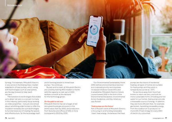 synergy . For example , Mitsubishi Electric is very active in facilitating mass-market adaptation of heat pumps , which , along with technologies such as solar panels , are the way forward to help reach net zero .