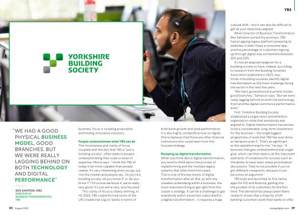 When Director of Business Transformation Ben Sampson joined the business , YBS had an ageing legacy platform powering its websites ; it didn ’ t have a consumer app ; and the percentage of customers signing up through digital was somewhere between 15 % and 20 %.